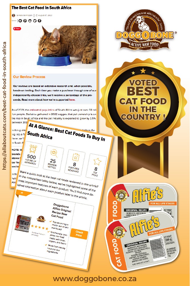 DoggObone’s Alfies Cat raw Meal Was voted South Africa’s No. 1 Cat Food in 2022