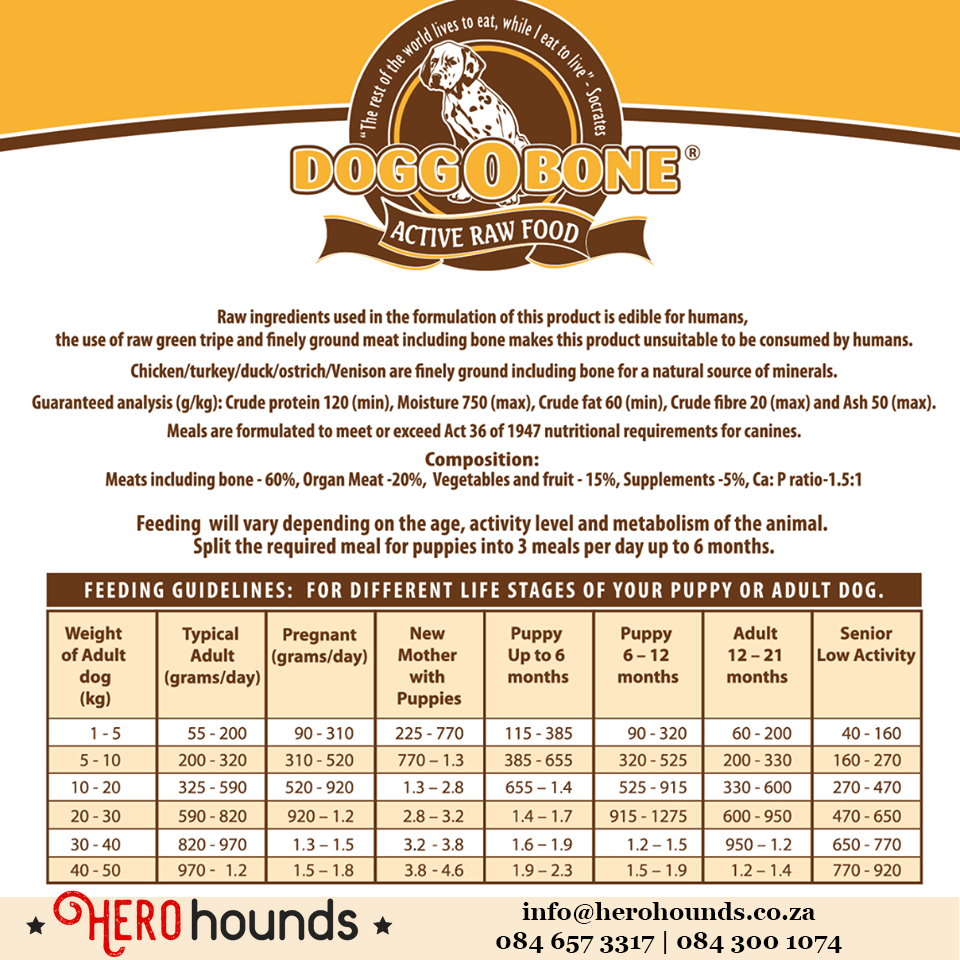·Doggobone website does have a feeding calculator to assist (https://zztop.herohounds.co.za)https://zztop.herohounds.co.za/all-about-raw-feeding-2/438/