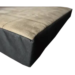 Dog Bed with Brown Faux Suede upper and black sides and bottom is removable and Hand washable. With 50mm medium density and 50mm High-density Foam.